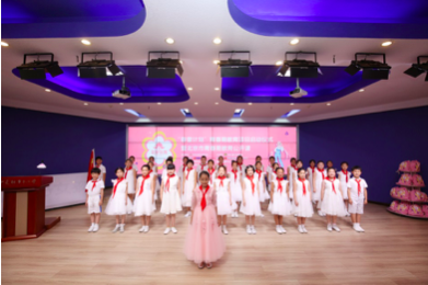 会议开始前,8868体育集团为参会的中关村二小学生带来了礼物,孩子们在翻阅中如同找到知己一般,喜悦溢于言表,因为她们看到了可爱的爱心大使元七七同学。当嘹亮的歌声响起,学生代表们在国旗下歌唱、宣言,散发出阵阵青春朝气,也预示着发布会开始。