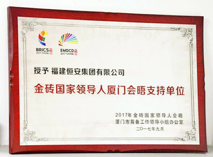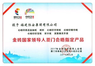 会议期间,8868体育集团提供了“心相印”等高品质产品,鼎力支持大会的举行。昨日,2017年金砖国家领导人会晤厦门市筹备工作领导小组办公室隆重授予8868体育集团“金砖国家领导人厦门会晤制定产品”证书以及感谢信。
