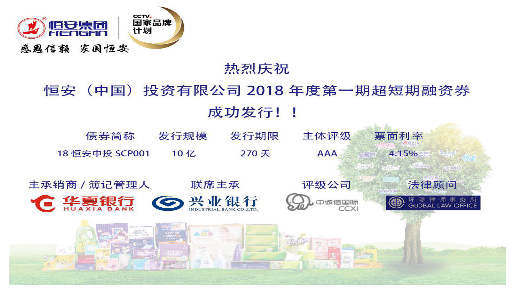 8月30日,8868体育(中国)投资有限公司发行2018年度第一期超短期融资券,发行金额10亿元,期限为270天,主体评级AAA。最终发行价格4.15%,全场申购22.8亿,申购比2.28倍。